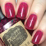 Be Still My Heart is a squishy berry red jelly packed with gold and red holo glitters, iridescent micro glitters, and lavender micro glitters. Designed to be worn as a topper over your favorite polish or built up to be full coverage in 3 coats.