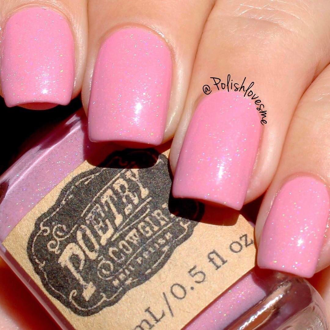 Cherry Glaze is a rosy medium pink scattered holo pastel with hints of rainbow sparkles. Opaque in 2 coats.