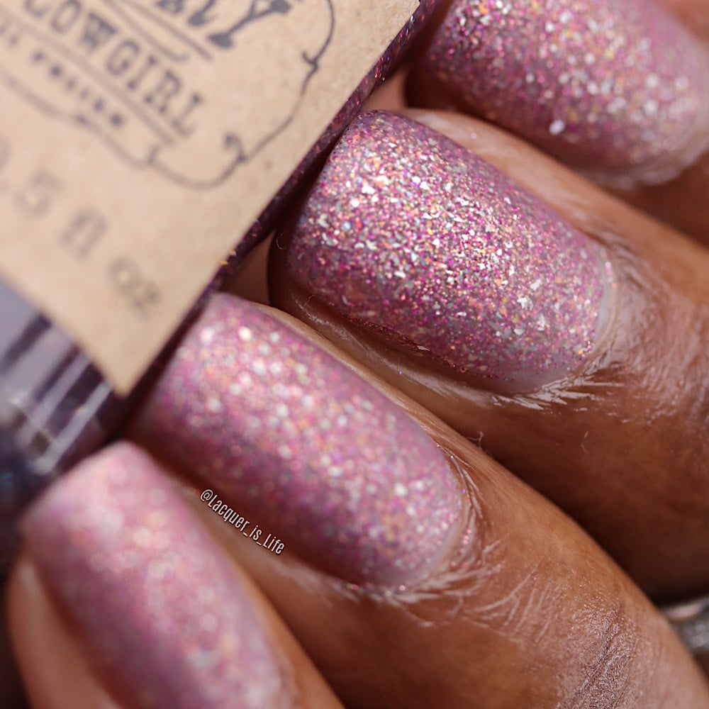 Lincoln Park is a full coverage glitter bomb packed with rose and fuchsia micro glitters, silver micro flakes, and orange-pink-gold iridescent color shifting flakies.