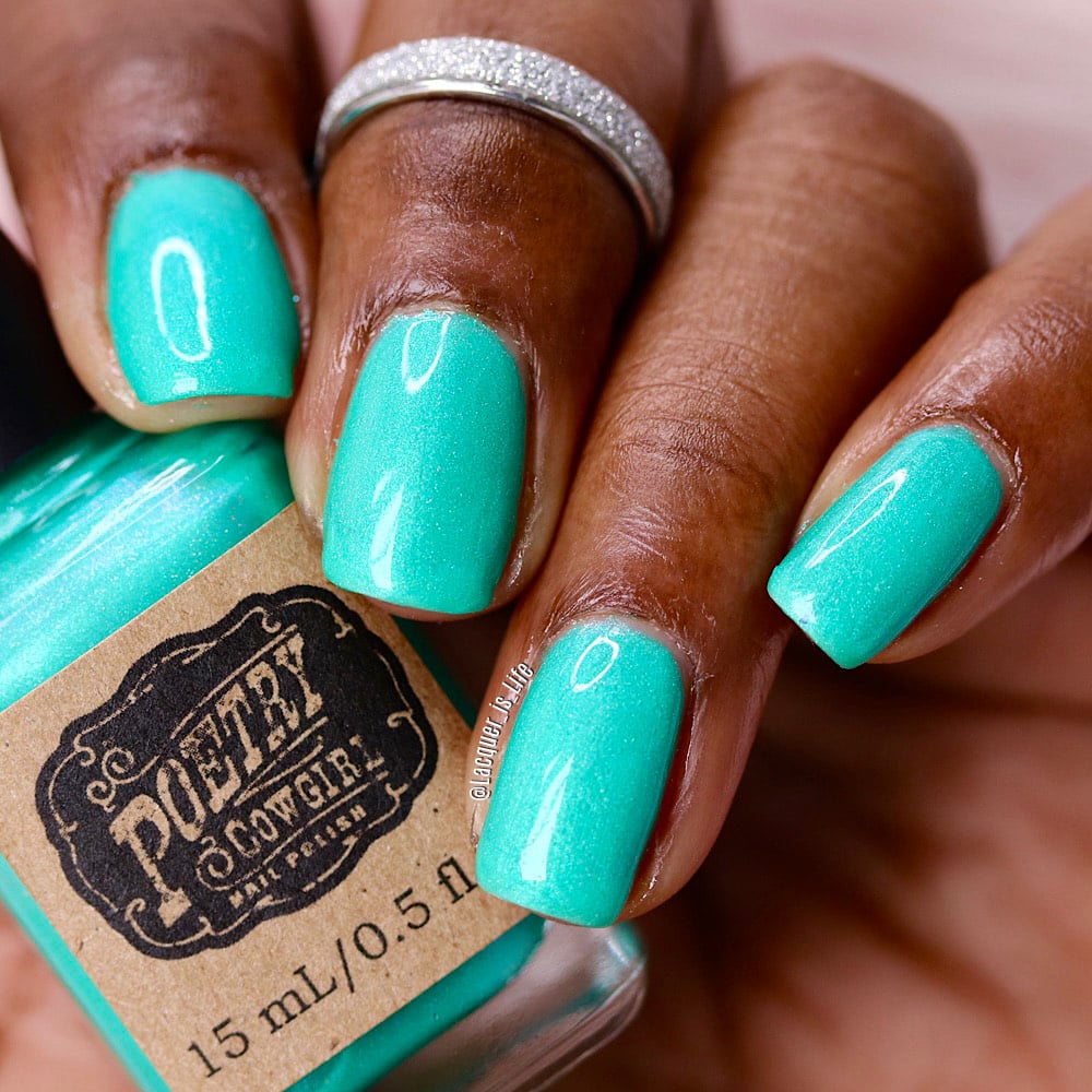 Magens bay is an iridescent turquoise blue shimmer with a touch of holo pigment.