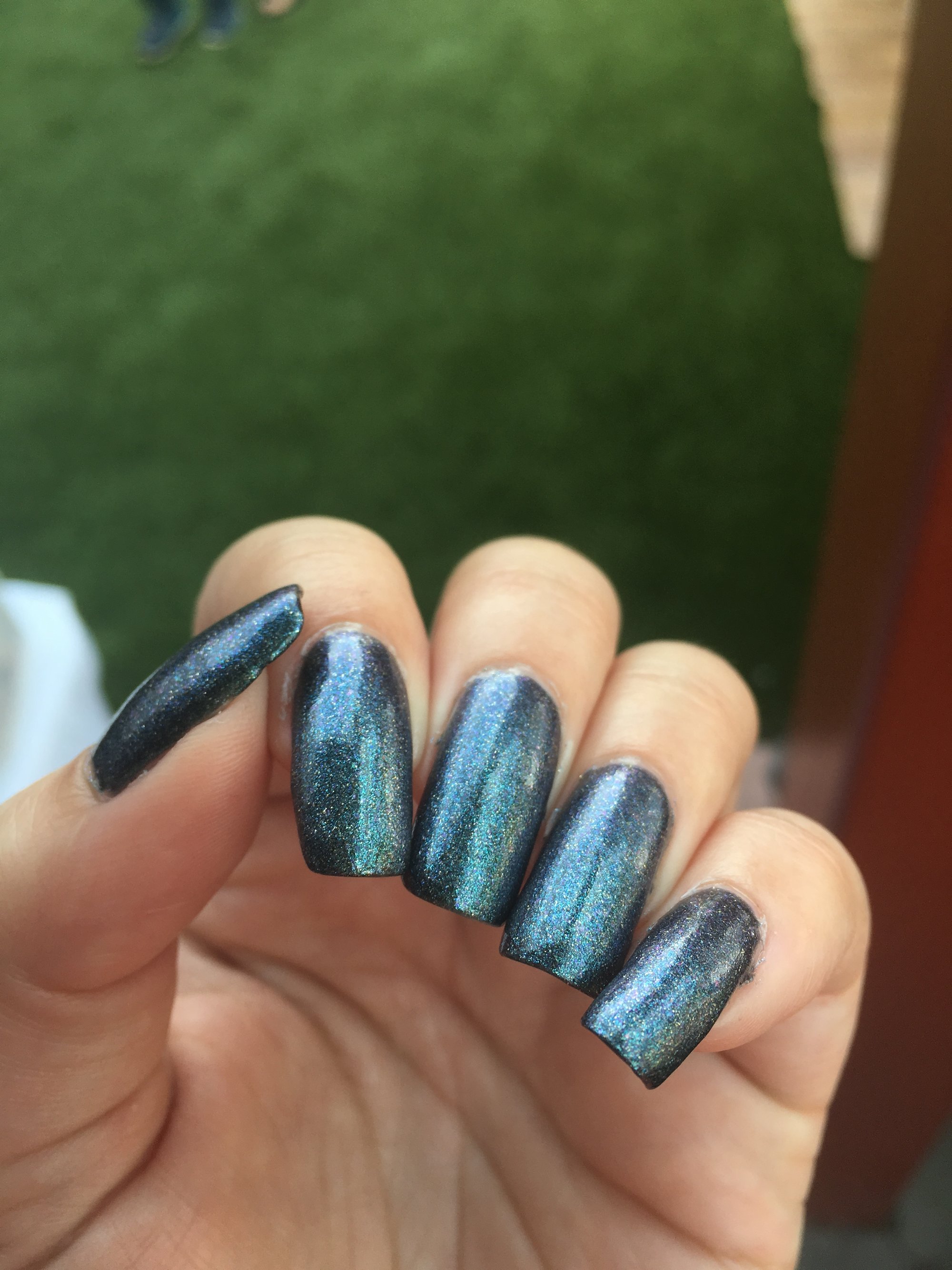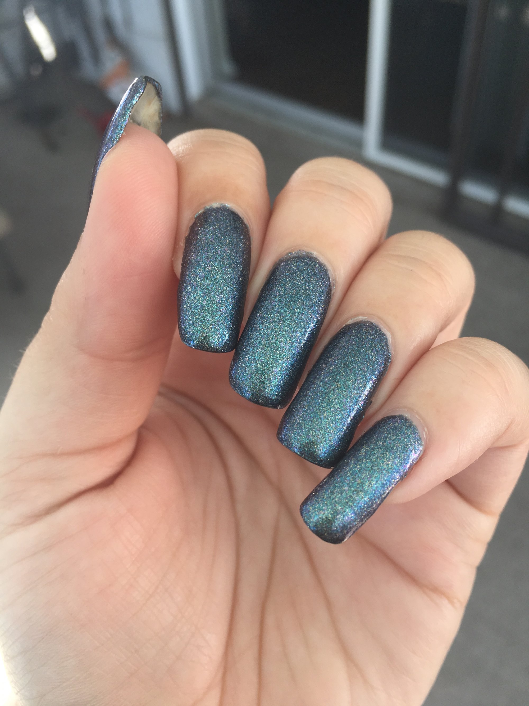 Mystery Bag #2 is a small batch polish that was included in the January 2019 Mystery Bags. It is a scatter holo gunmetal base packed with blue-green-purple shifting shimmer, gold micro glitter, platinum silver micro flakies, and purple pearl micro flakies.