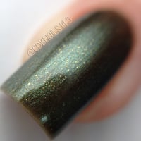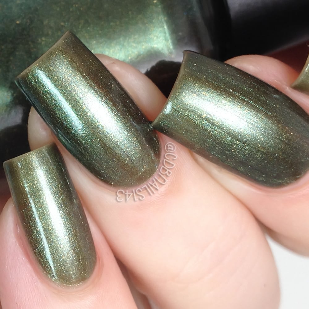 Some Trees Don’t is a deep, blackened green shimmer with gold flecks.