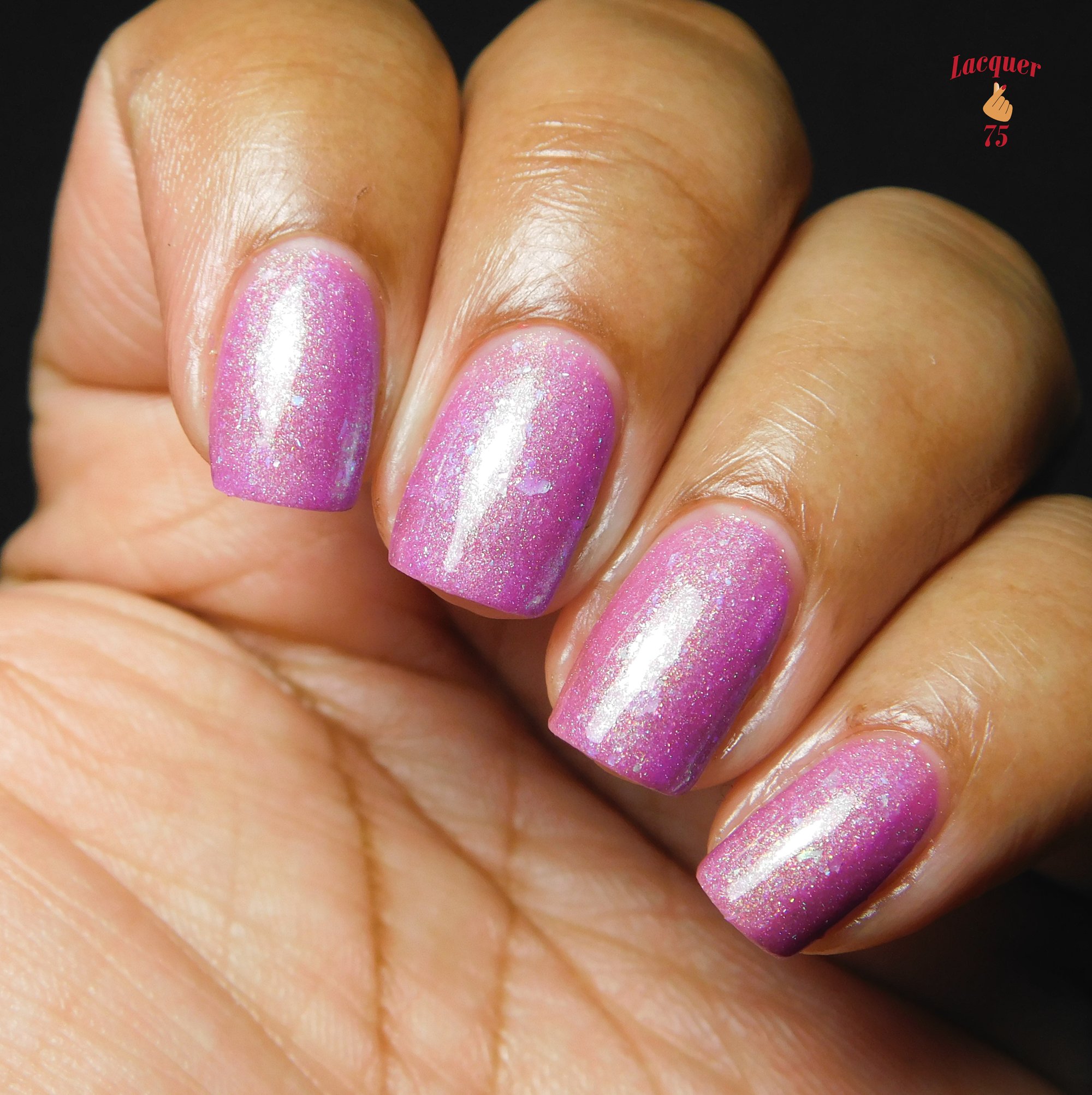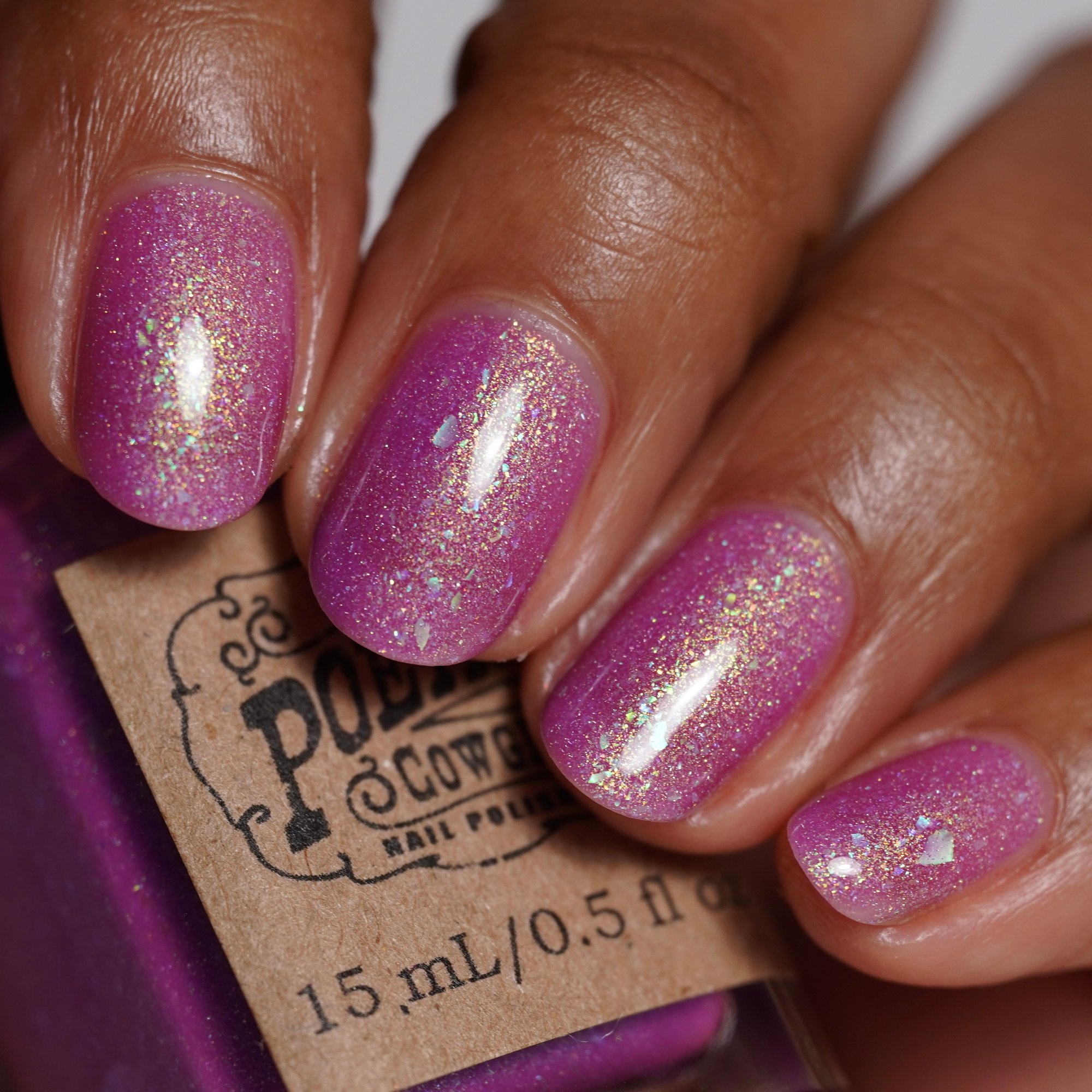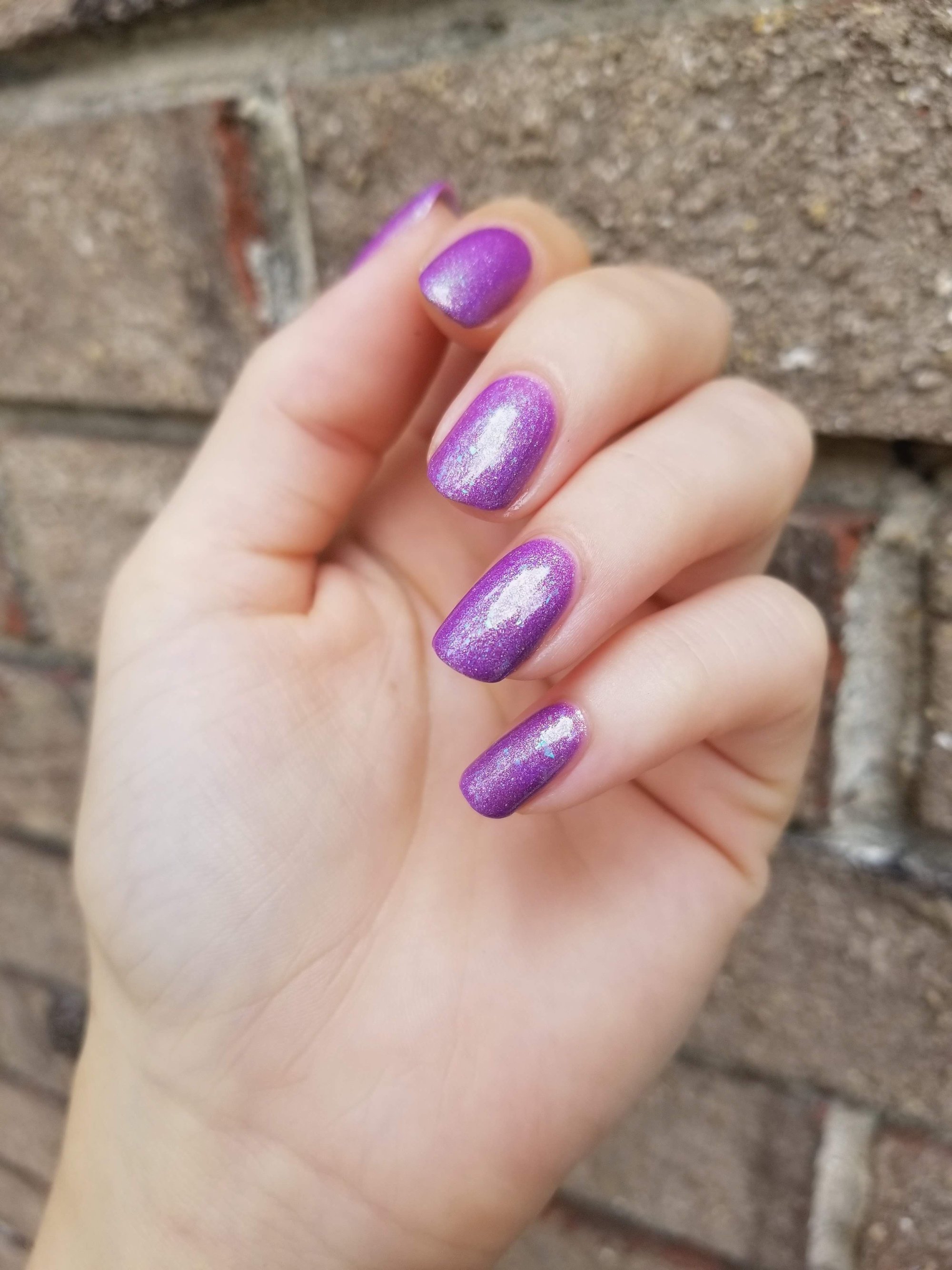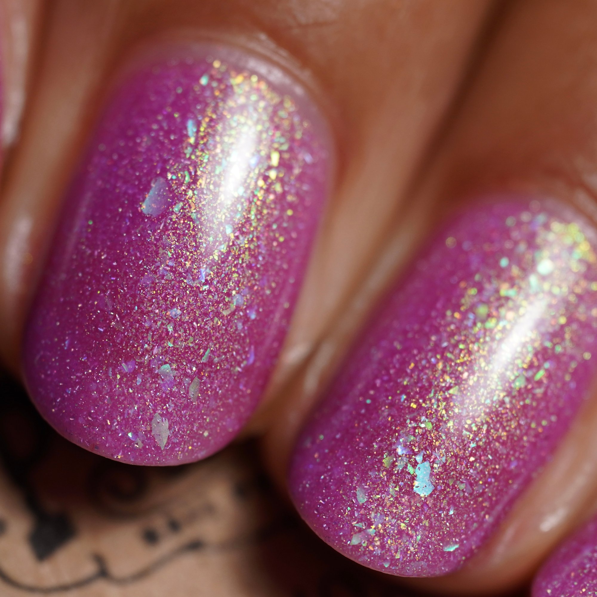 Summer in Chicago is a neon purple base packed with green-teal-purple shifting shimmer and flakies, and a touch of holo micro flakies.