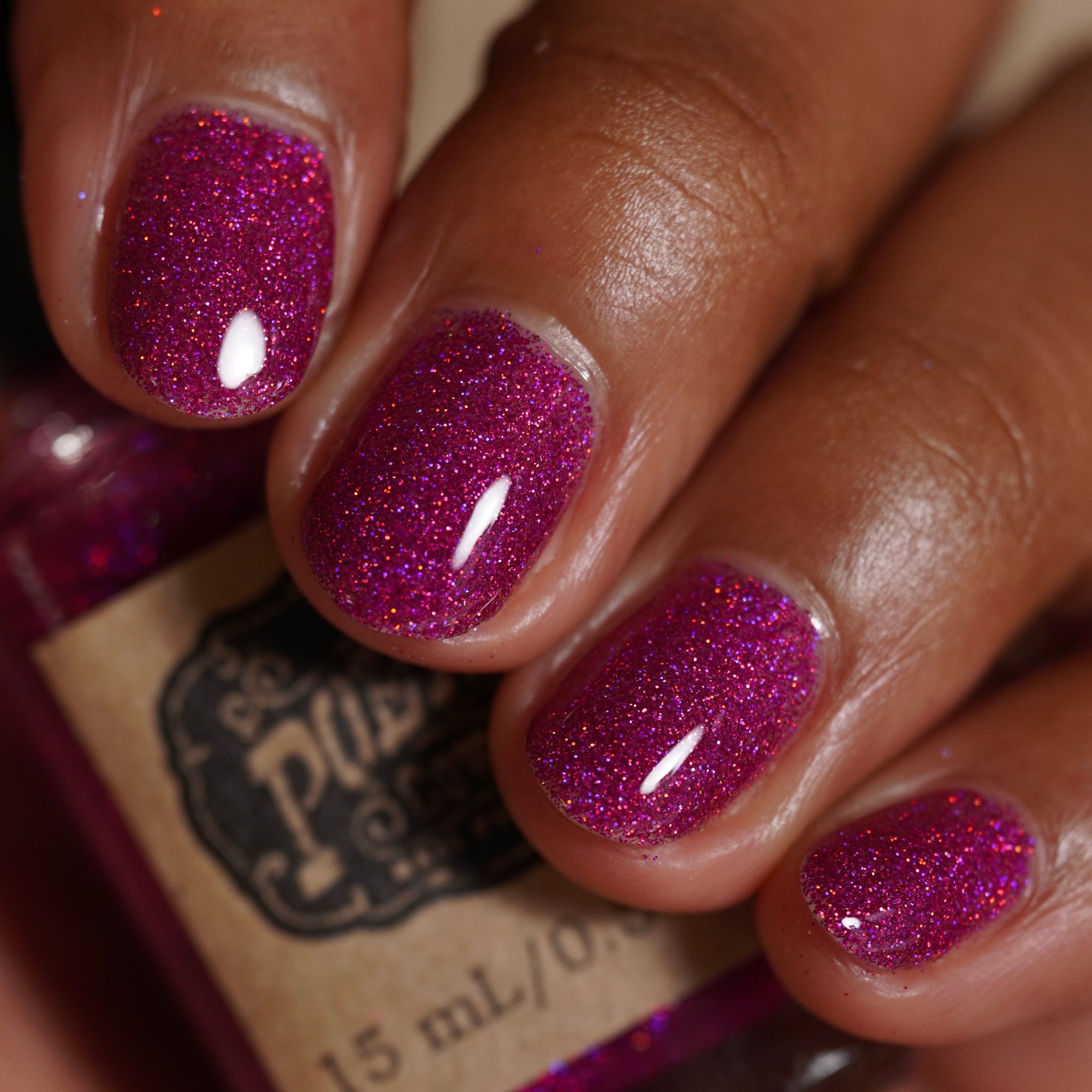 Trick Rider is full coverage glitter packed with bright fuchsia ultrafine holo micro glitters.